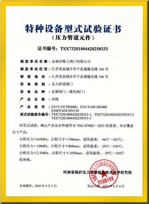 閘閥試驗證書